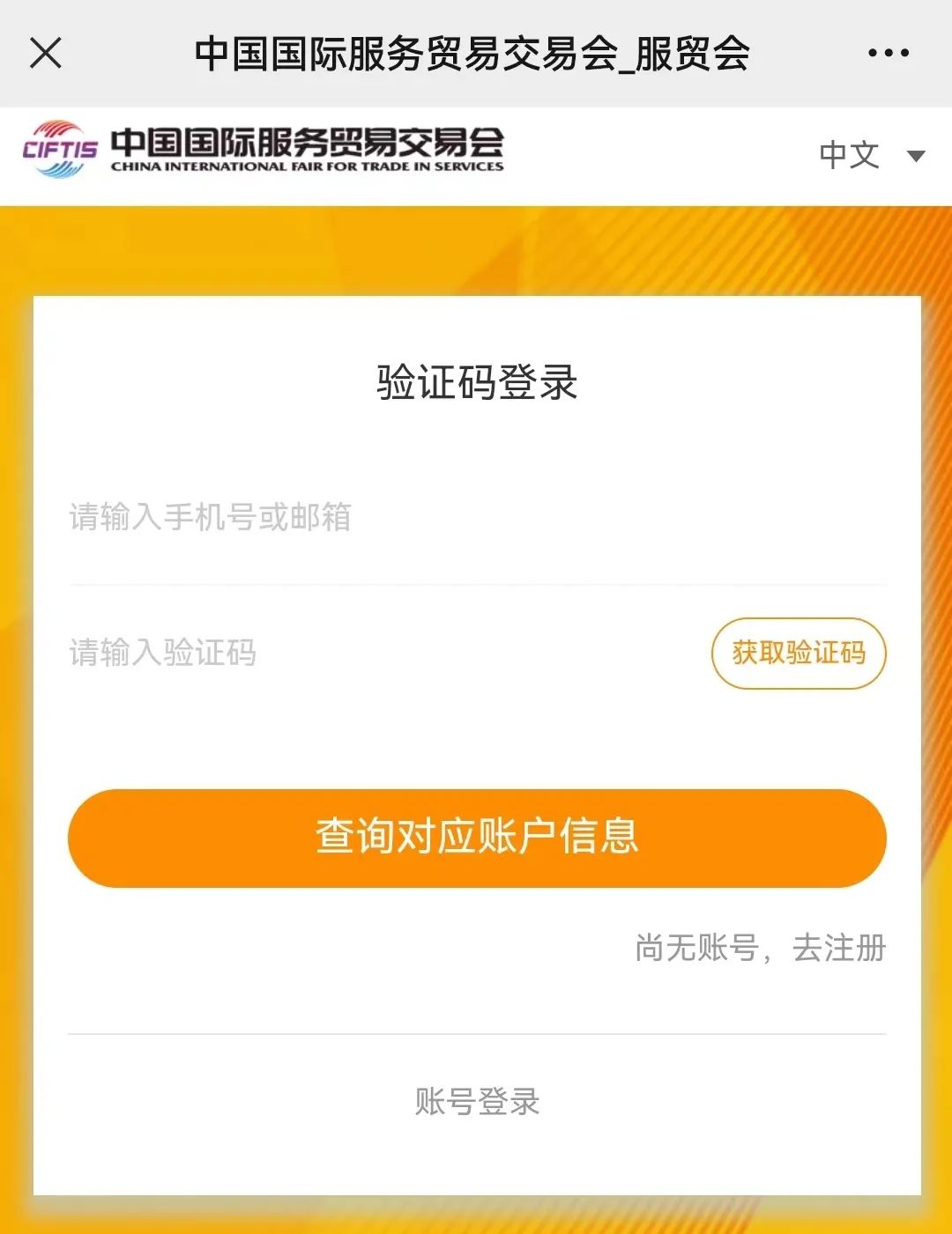 点击底部“东方资讯”选择“服贸会”进入官方页面完成注册、登录。