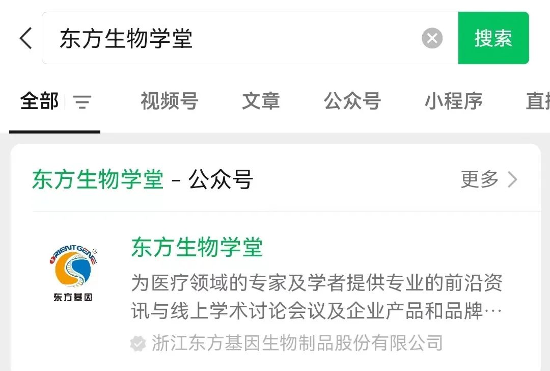 微信搜索关注“东方生物学堂”微信公众号。