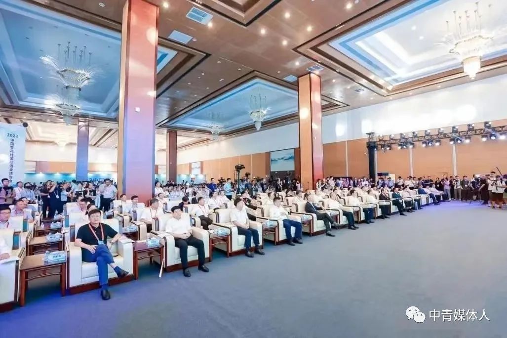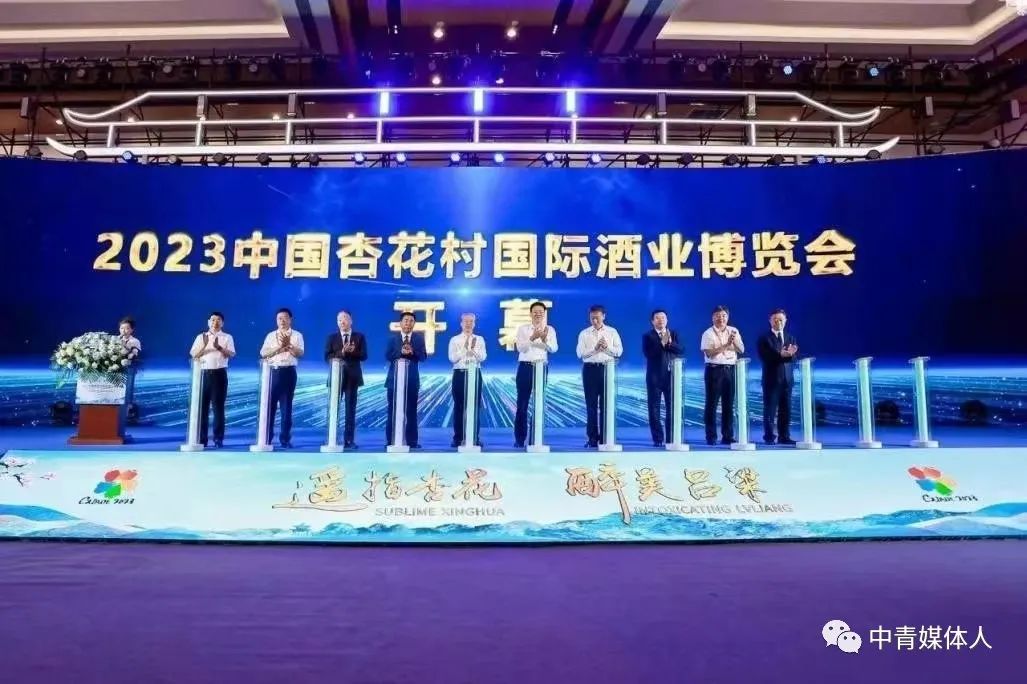 在与会领导嘉宾的共同见证下,山西省人大常委会副主任贺天才,山西省政府副省长刘旸,山西省政协副主席李正印,中国酒业协会理事长宋书玉,吕梁市委书记孙大军,吕梁市委副书记、市长张广勇,吕梁市人大常委会主任刘振国,吕梁市政协主席乔晓峰,汾酒党委书记、董事长袁清茂,汾阳市委书记李正奎登台,按动启动装置,“2023中国杏花村国际酒业博览会”正式开幕。