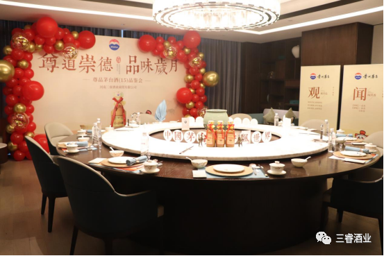 文以载道,酒以承情。为深入践行“五合营销法”,携手茅粉共享美酒美食美生活。2023年8月22日,河南三睿酒业商贸有限公司开展“尊道崇德 品味岁月”尊品茅台酒(15)品鉴会在郑州高新区皇冠假日酒店孔雀厅成功举办。河南三睿酒业商贸有限公司总经理宋智祥与知名企业核心客户齐聚一堂,共饮陈年佳酿,品味岁月悠长。