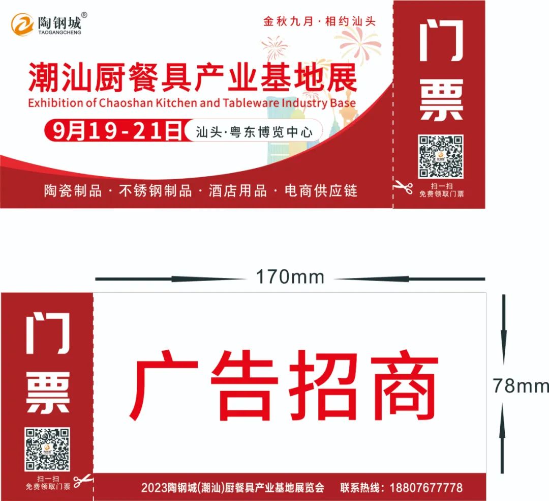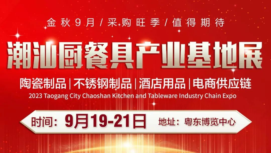 2023陶钢城(潮汕)厨餐具产业基地展,将于2023年9月19-21日在广东汕头粤东博览中心盛大举办。1000+省内外展商,10000+品牌产品,200000+专业采购商。“立足潮汕,面向全国”,联动不锈钢陶瓷制品市场优势资源,切合金秋九月采购旺季,集不锈钢陶瓷制品供需对接、品牌推广、新品发布、行业交流于一体的不锈钢陶瓷制品行业综合平台,为潜力巨大的潮汕不锈钢陶瓷制品市场带来年中的合作新起点,帮助企业快速占领市场,扩大企业知名度、迅速了解行业发展趋势,聚势打造金秋潮汕厨餐具行业盛会。
