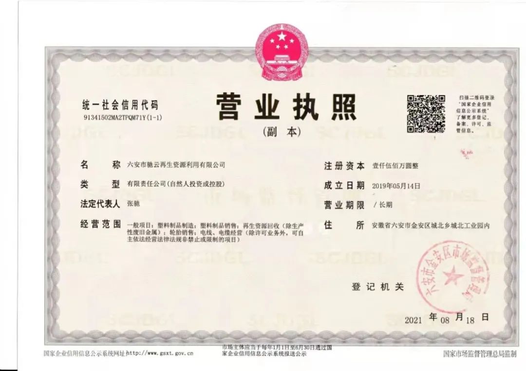 界首市冠泓塑业六车间(原六安驰云再生资源),有环评,是一个专业生产HDPE管道颗粒的企业,可开票。企业法人是:“华东地区最大废旧物资集散地”宿迁耿车人,有着二十年的塑料颗粒生产经验,有很多管道破碎料子的购买渠道,管道料子自己破碎自己使用质量保证。