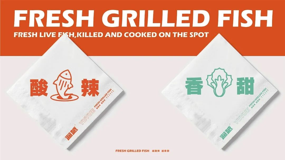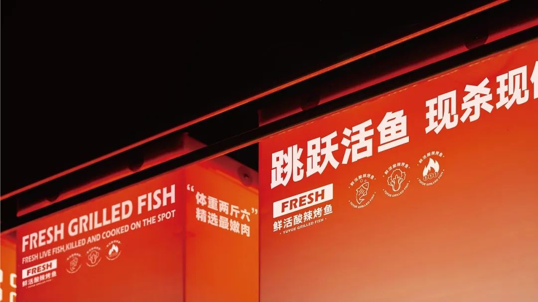 直观效率不矫情,区别于三四线小城市大多数烤鱼店的“土气轻浮和平庸”。同时增加品质感、同一专业感的传达,整体让品牌感不言自明,既有特色,又有记忆点和体验感。