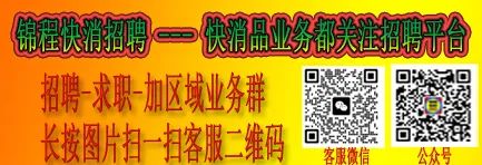 声明:本公众号给予各企业以及快消同仁代发招聘招商, 求职同仁选应聘企业自行甄别好企以及岗位等情况,经销商也要甄别好企业,公众号不能百分百甄别信息真实性,如果需要远方面试需要和家人确认,注意安全,产生任何纠纷损失和本公众号无关(企业招聘,业务求职,请加锦程客服小消微信fc091277)