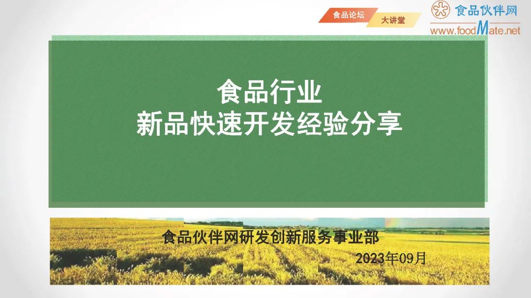 【食品论坛·大讲堂】食品行业新品快速开发经验分享