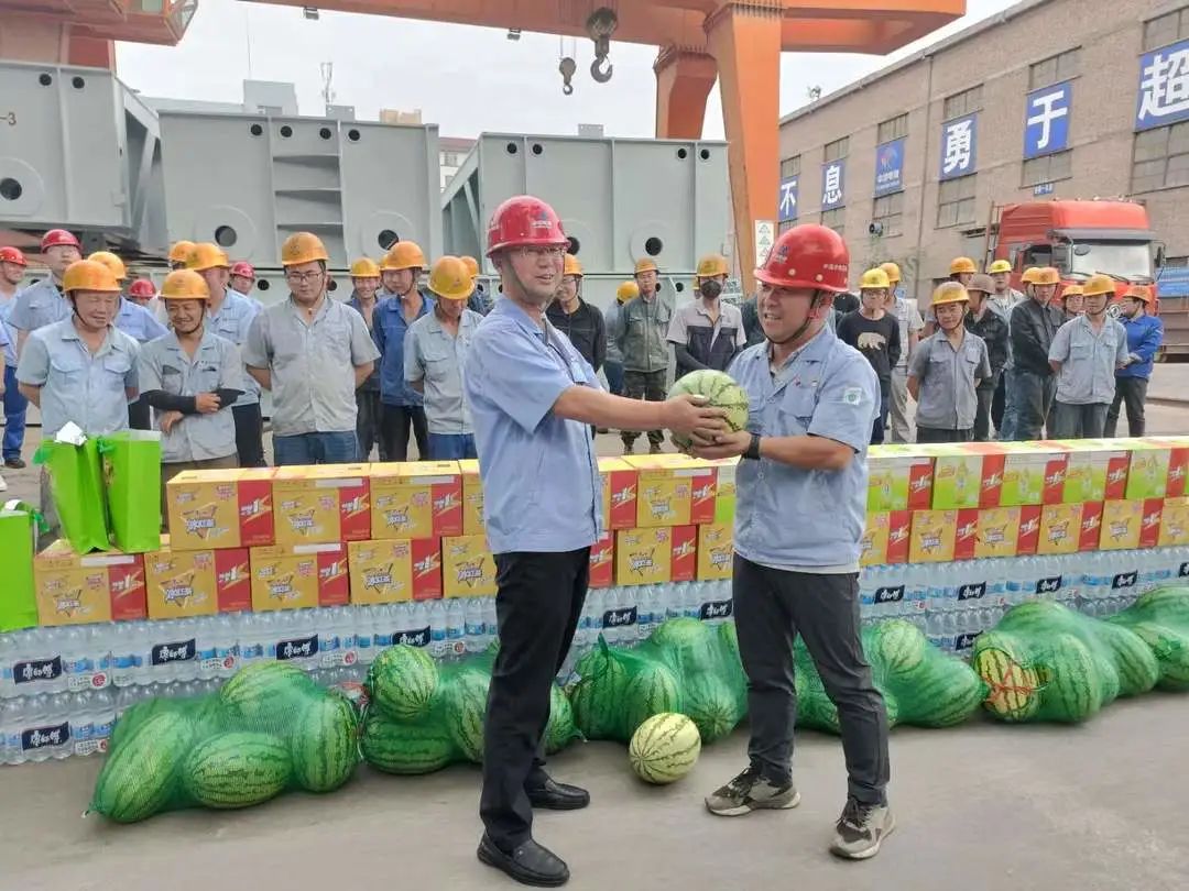 8月11日,装备公司工会在大连公司太平湾基地项目部开展“深化主题教育 关爱一线员工”专项行动暨“夏送清凉”集中慰问活动。此次慰问,装备公司工会为坚守在岗位上的一线员工们送来了西瓜、酸梅汤、冰红茶等消暑降温物资,并与员工们进行交流,叮嘱大家要注意身体健康、劳逸结合,做好自身高温防护措施。在后续的防暑降温工作中,大连公司将始终落实各项防暑降温措施,合理调整员工作息时间,因时制宜完善各项服务措施,做到关心关爱每一个员工的身体健康,做好员工夏季高温天气保障工作,增强员工的获得感、幸福感、安全感。