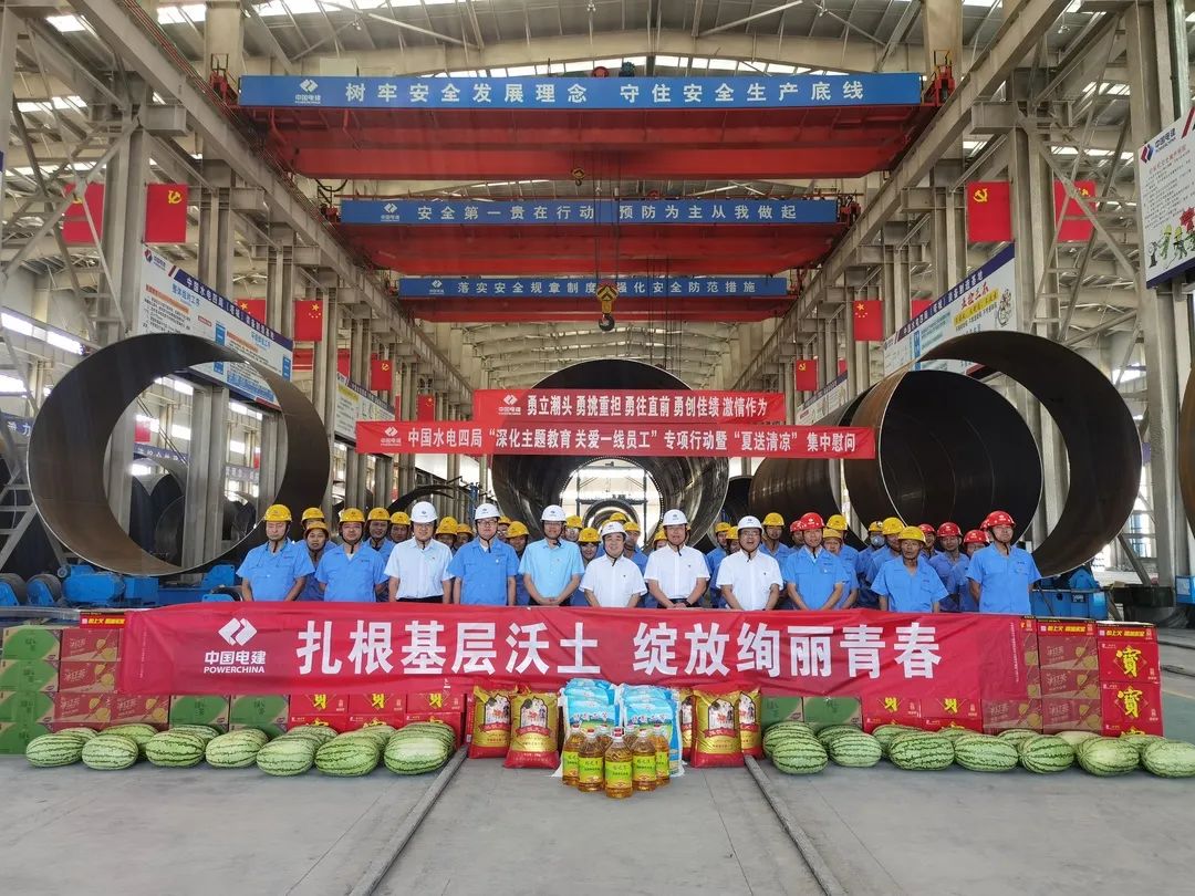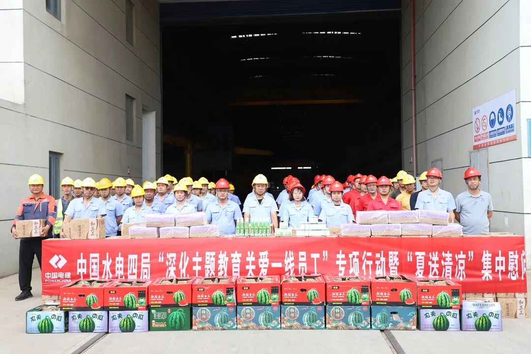 7月11日,刘家峡分公司开展“深化主题教育 关爱一线员工”专项行动暨“夏送清凉”集中慰问活动。分公司为一线员工准备矿泉水、饮料、西瓜、茶叶等防暑降温物品,对广大员工进行了现场慰问,亲手将饮品、西瓜送到员工手中,并对他们的敬业精神表示最真挚的感谢,叮嘱大家在工作时务必确保身体健康和工作安全,适时调整作息时间,安全度过高温天气。