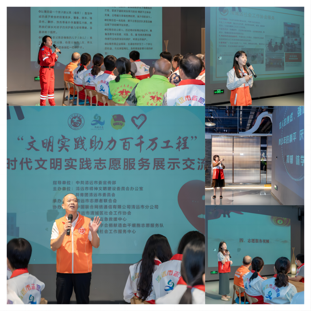 随着社会的发展和进步,新时代文明实践志愿服务活动在我国得到了广泛的开展和推广,为培育和实践社会主义核心价值观,进一步弘扬“奉献、友爱、互助、进步”的志愿精神,推动志愿者行动深入开展,推动志愿服务常态化、持久化发展,8月23日,市文明办、团市委、市志愿者联合会携手中国联合网络通信有限公司清远市分公司、清远市清城区社会工作协会、清远市中志应急救援中心、清远市红十字会捐献造血干细胞志愿服务队、清远市乐善社会工作服务中心共同举办“文明实践助力百千万工程”新时代文明实践志愿服务展示交流活动。50名分别来自清远市各地志愿组织的志愿者骨干齐聚一堂,共同交流志愿服务经验,分享志愿服务心得,为推动我市志愿服务事业发展贡献力量。