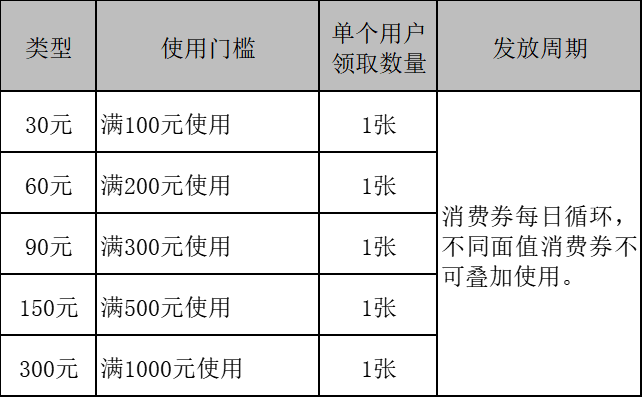消费券每日循环发放,采取先到先得、发完为止的方式进行。