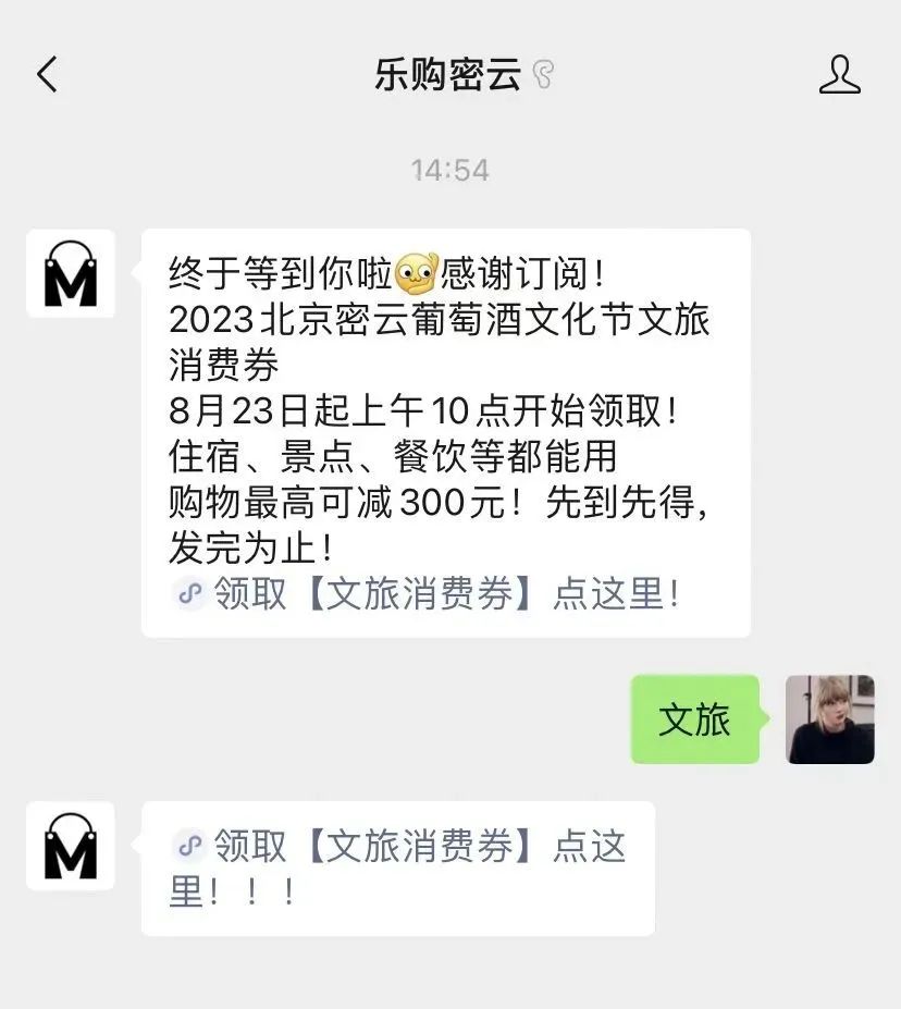 扫描下方二维码,关注“乐购密云”微信公众号,回复“文旅”关键词,进入“消费地图-密云区”小程序;