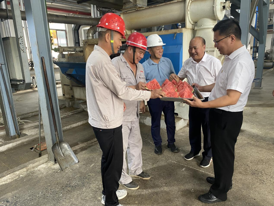 8月18日上午,市政府国资委到荆品油脂公司开展“夏日送清凉”活动,慰问一线员工。