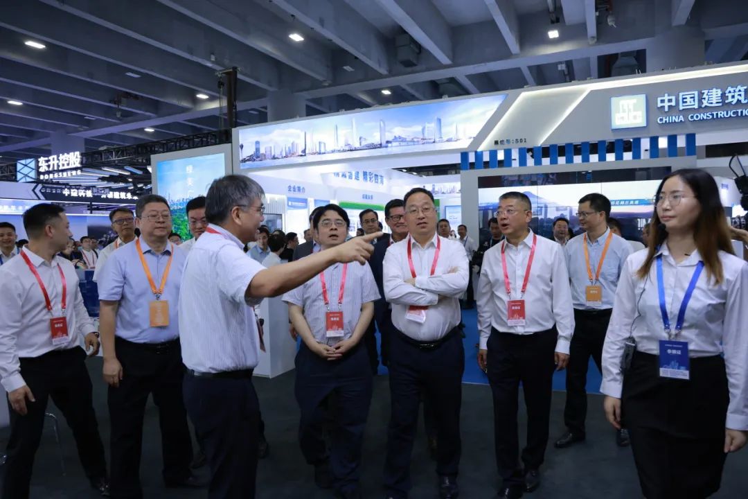 博览会期间,省市住建局领导一行到广州建筑展厅巡馆交流,深入了解广州建筑全产业链尤其是MiC新技术发展情况,并对广州建筑发挥“链长”企业头雁引领作用、带动产业融合发展、引领建筑产业升级等表示肯定。
