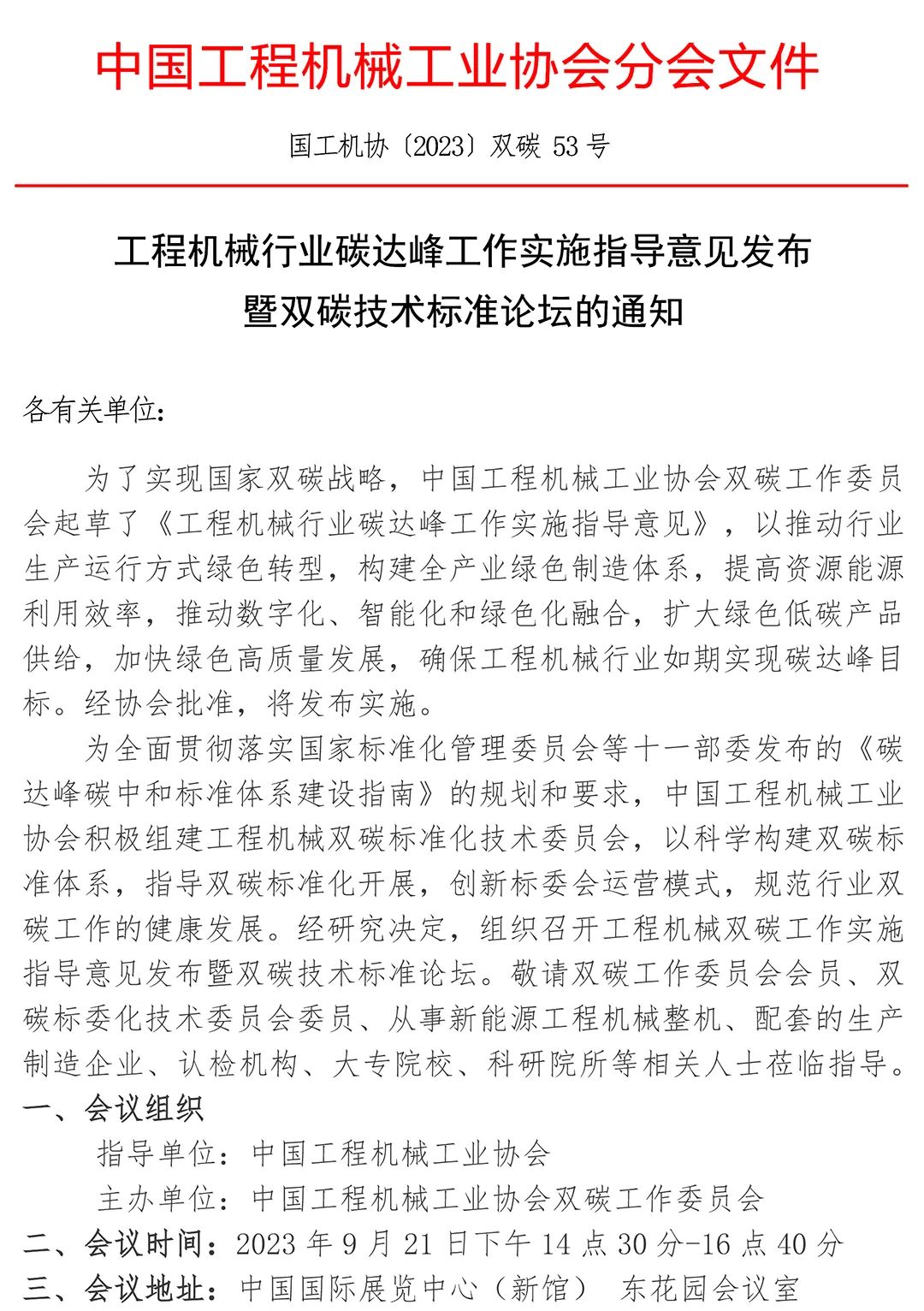 为全面贯彻落实国家标准化管理委员会等十一部委发布的《碳达峰碳中和标准体系建设指南》的规划和要求,中国工程机械工业协会积极组建工程机械双碳标准化技术委员会,以科学构建双碳标准体系,指导双碳标准化开展,创新标委会运营模式,规范行业双碳工作的健康发展。经研究决定,组织召开工程机械双碳工作实施指导意见发布暨双碳技术标准论坛。敬请双碳工作委员会会员、双碳标委化技术委员会委员、从事新能源工程机械整机、配套的生产制造企业、认检机构、大专院校、科研院所等相关人士莅临指导。
