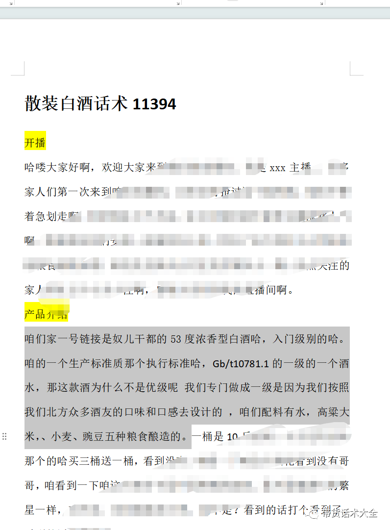 散装白酒话术。从开播到下播。