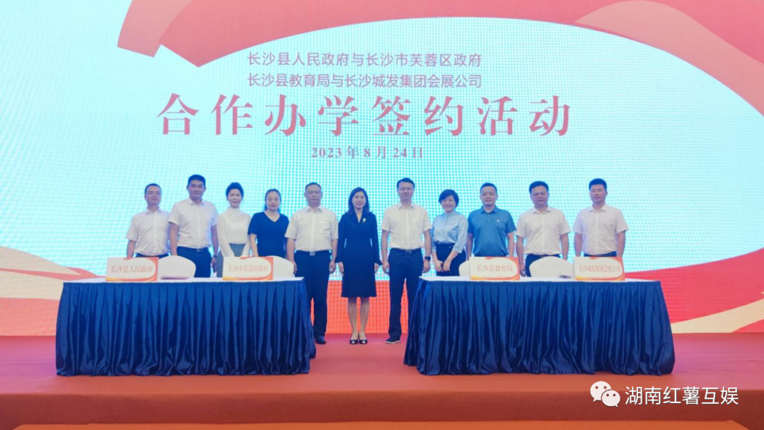 8月24日上午,育英会展小学合作办学签约活动在长沙国际会展新城举行。长沙市芙蓉区政府、长沙县人民政府、长沙县教育局、长沙城发集团会展公司签订合作办学协议。新学校总投资约2亿元,办学规模48个班,可提供2160个学位,将于今年秋季开学。这也意味着长沙国际会展新城继成功引入雅礼洋湖会展中学后,又添一所品牌名校,片区优质教育资源配套再升级。