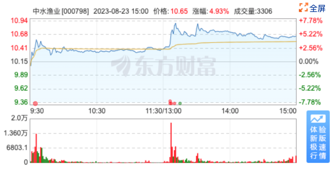 据GEOMAR测算,日本核污水辐射10年左右即可扩散至全球海域,预计海产品将逐步受到核辐射污染并存在食用安全风险,淡水水产或对其形成替代,进而推动淡水养殖景气度提升。因为这个消息影响,8月23日,A股水产品、食品安全等板块大幅拉升。下午,国联水产一度大涨超16%;百洋股份涨10%涨停,偏离值达11.96%;粤海饲料、中水渔业、獐子岛、开创国际等快速跟涨。