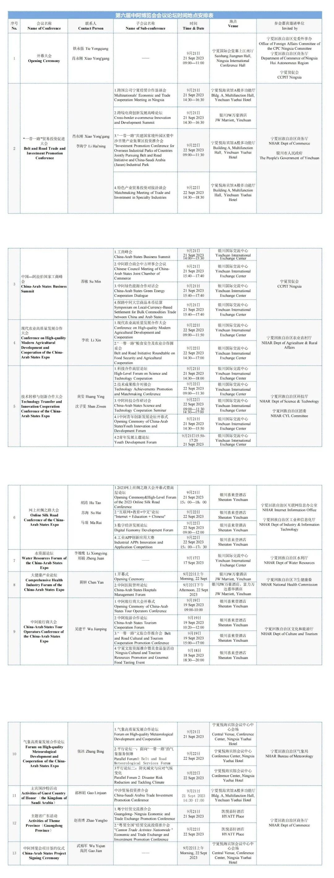 第六届中阿博览会会议论坛时间及地点安排表,点击查看→