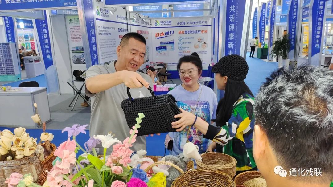 在通化残联展位,姜文科详细查看并了解我市参展残疾人企业情况,听取参展产品介绍,并与相关部门就如何通过东北亚博览会这一平台宣传我市残疾人事业成果等内容进行交流。