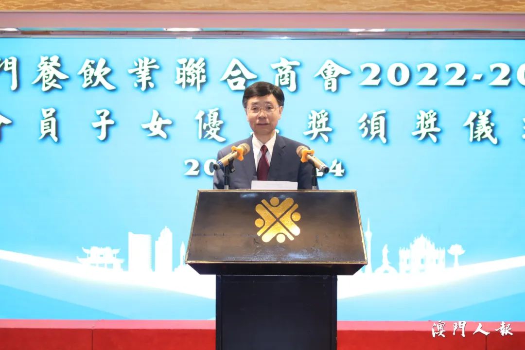 澳門餐飲業聯合商會理事長李汝榮致辭時表示,該會於1989年設立會員子女優異獎計劃,至今已堅持落實34年,惠及修讀中、小學的優秀會員學子,旨在鼓勵和表揚會員子女在學習上的卓越表現,激勵各位同學繼續邁步向前,持之以恆。很高興今年又有近百位品學兼優的同學獲得此項殊榮,在去年面對新冠疫情帶來的各種挑戰下,同學並未輕言放棄,仍然用心學習,取得驕人成績,展現過人的堅韌和成長的毅力,從激烈的學習競爭中脫穎而出。