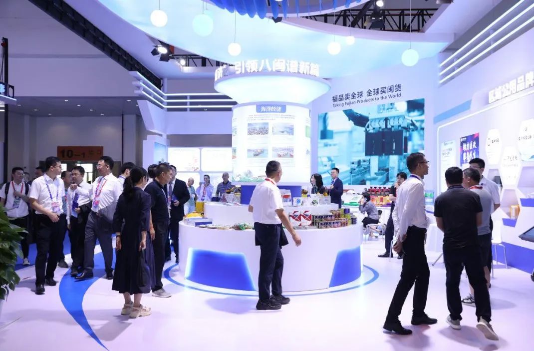 福建展区内,我省共组织19家企业和单位展示展销。厦门国贸、福昕、亿能达、中海创等企业重点展示各自优势产品;泉州德化陶瓷、三明河龙贡米、南平政和白茶、建盏等围绕区域公用品牌进行重点宣传;正山茶叶、福矛酒业和古龙、绿进、海文铭、沙县醉有才、三明千年客家食品等企业围绕福茶、福酒、预制菜等领域进行展示展销。