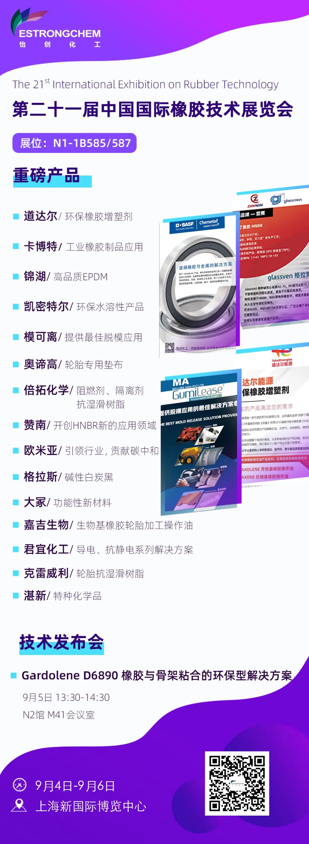 怡创化工/君宜化工将携重磅产品亮相展会。欢迎大家一起相聚上海,共享橡胶学术璀璨盛会!