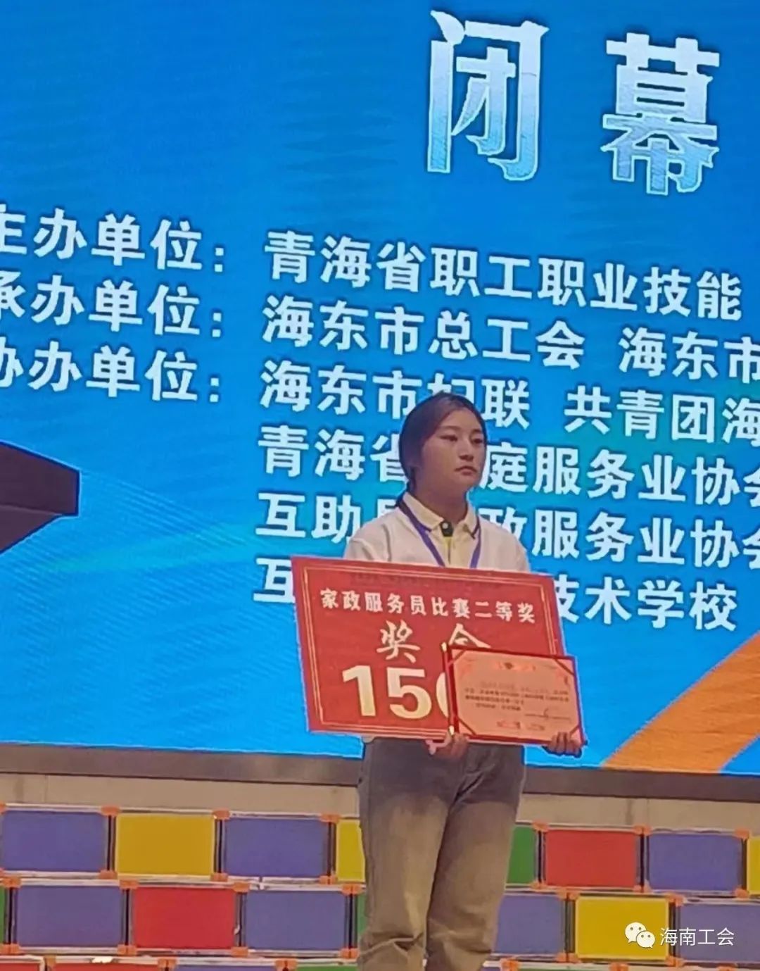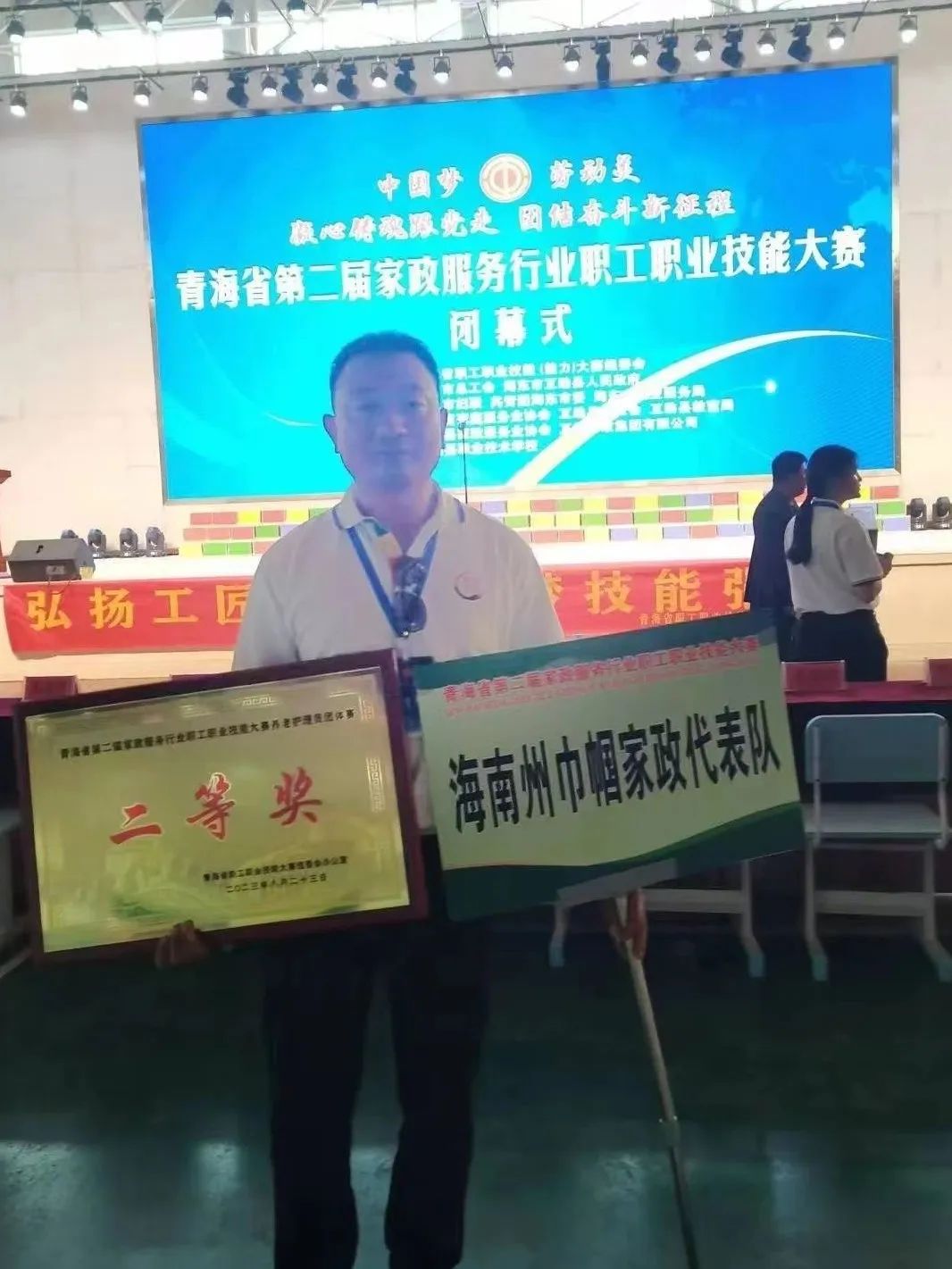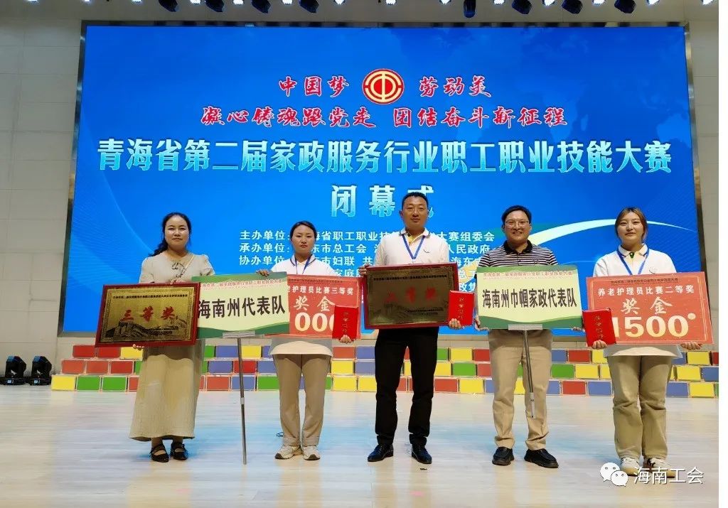 在8月22日至23日举办的以“匠心筑梦建新功 家政服务展风采”为主题的青海省第二届家政服务行业职工职业技能大赛中,我州两支队伍4名选手参加了家政服务员、养老护理员两个赛道的比赛。各参赛队伍通过理论考试和实际操作两个环节来角逐,比赛现场,4名参赛选手冷静应战,动作轻柔娴熟,操作精准专业,表达清晰准确,体现出良好的综合素质和高超的技能水平。经过激烈角逐,我州选派的两名养老护理员分别荣获二等奖和三等奖,海南巾帼家政服务有限公司代表队荣获二等奖,海南州总工会荣获三等奖。