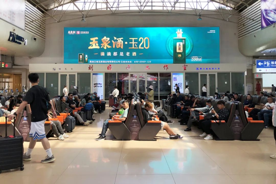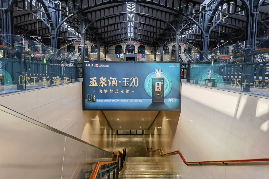 正值2023年铁路暑运末尾阶段,旅客流量庞大的黄金时期,玉泉酒业联手永达传媒登陆哈尔滨站、哈尔滨西站、沈阳站、大连站、 佳木斯站、大庆西站、石家庄站、郑州站、洛阳站等十余座高铁核心站点,以点辐射周边市场,高效打开品牌传播路径,直击高端、次高端消费群体视野。