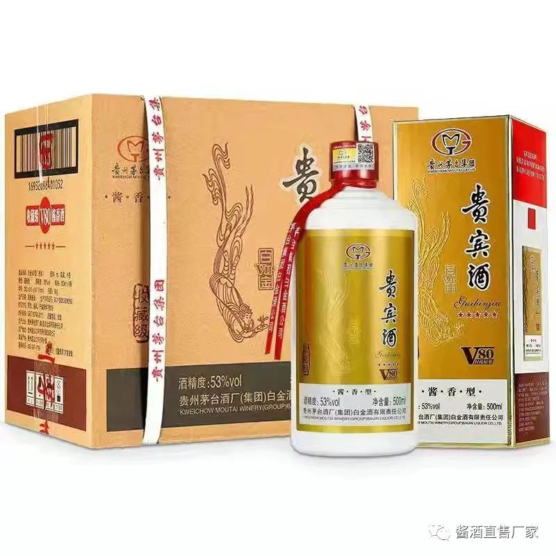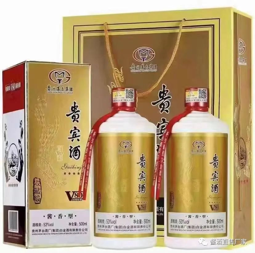 贵宾酒 V80 精选红缨高粱和延津有机小麦,传承工艺酿造。严格按照端午采曲、重阳投料、九次蒸煮、八次发酵、七次取酒,五年以上窖藏才可出厂。酱香浓郁,酒体微黄,酒花丰富,挂杯明显,入喉一条线酒线绵长