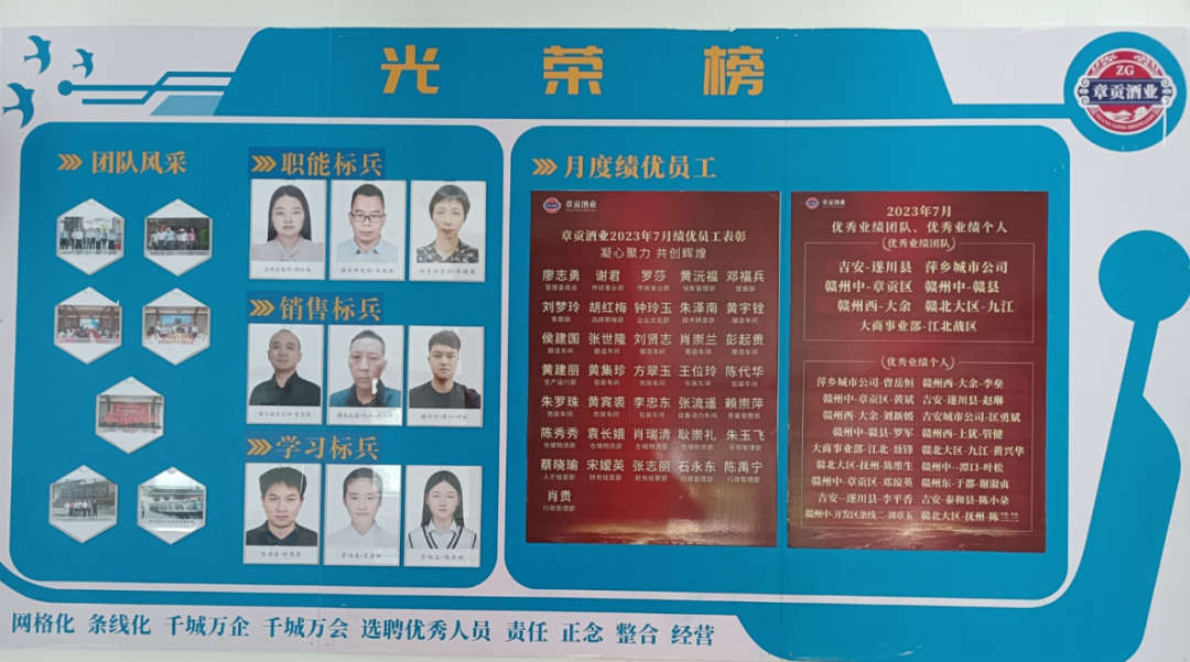 8月24日,荣获文化墙销售标兵赣州中城市公司-潭口-叶松、职能标兵品牌策略部胡红梅、技术研发部朱泽南以及学习标兵管培生张燕贵、肖若虹、高安琪齐聚贵宾楼标兵用餐奖励。公司副总经理皮兴、中台工作小组周春燕受邀出席,对标兵的优秀业绩与积极努力表示鼓励,用餐期间关心各员工的工作、家庭及学习成长情况。年轻人才是公司未来的希望,重人才即重基础,期待更多的优秀人才脱颖而出,为章贡酒业的高质量发展添砖加瓦。