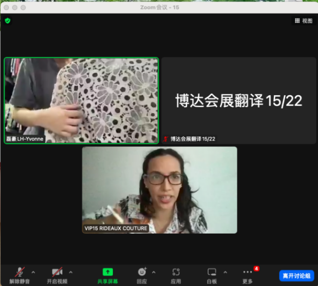 凡特思集团有限公司是一家涵盖针/梭织、染色、印花、后整和出口全产销链的现代化大型纺织集团。公司负责人表示,本次参加绍兴名品国际贸易云展会,企业成功对接来自西欧地区的五位采购商。公司的针/梭织产品凭借设计新颖、款式多样的特性,成功收获多个意向客户的青睐。来自法国Malhia Company公司的Ochoa Ivonne经理表示,后续将进一步沟通具体产品报价和采购数量。
