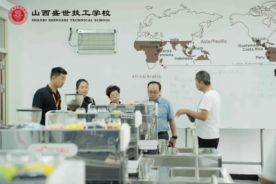 山西盛世餐饮旅游技工学校校长王建军、山西盛世面食科技研究院院长刘志娟、山西盛世餐饮旅游技工学校中西式面点系主任成凯、山西盛世餐饮旅游技工学校西式面点系副主任付慧玲陪同考察。