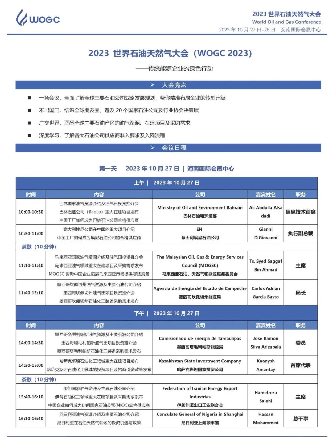 【会展动态】2023年世界石油天然气大会(WOGC 2023)最新议程!!!