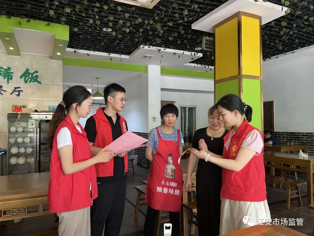 为进一步提倡“光盘行动、反对浪费、崇尚节约”等文明行为,倡导广大居民珍惜粮食、节俭用餐,建设节约型社会,8月25日,江安县市场监管局组织志愿者走进餐饮企业开展反餐饮浪费宣传活动。
