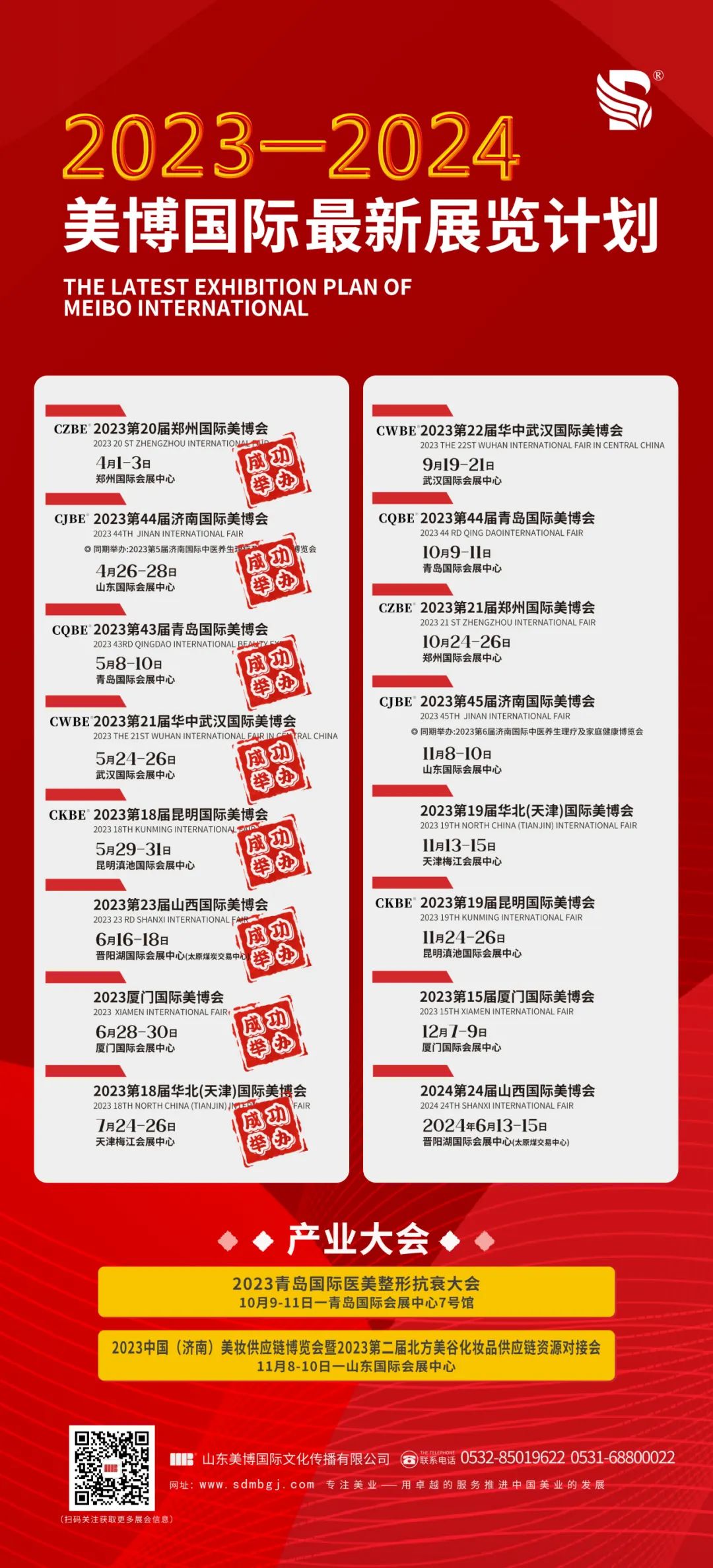 2023第45届济南国际美博会,“泉”力出击,规划展览面积3万平方米,预计搭建3000+展位,将邀请4000+国内外知名品牌齐聚。期间将举办健康养生与美丽产业的品牌展示、技术展示及产学研发展论坛等。将于2023年11月8-10日,在山东国际会展中心举办。