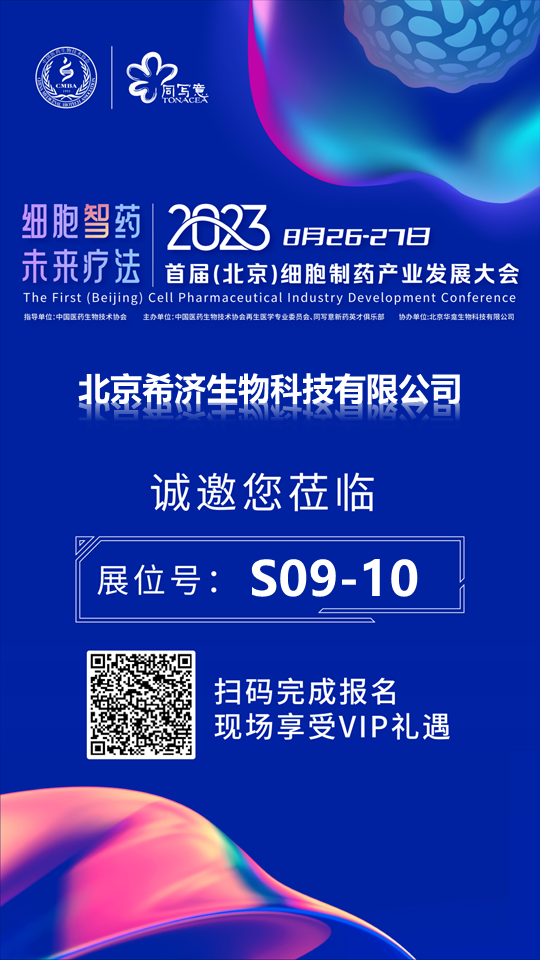 希济生物(展位号:S09-10)即将参展“2023首届(北京)细胞制药产业发展大会”,欢迎您莅临展台洽谈。通过希济生物报名,可领取少量免费票名额!