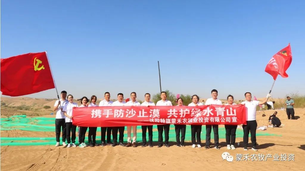 8月21日,蒙禾农投公司全体人员参加荒漠化综合防治黄河”几字弯“攻坚战活动。