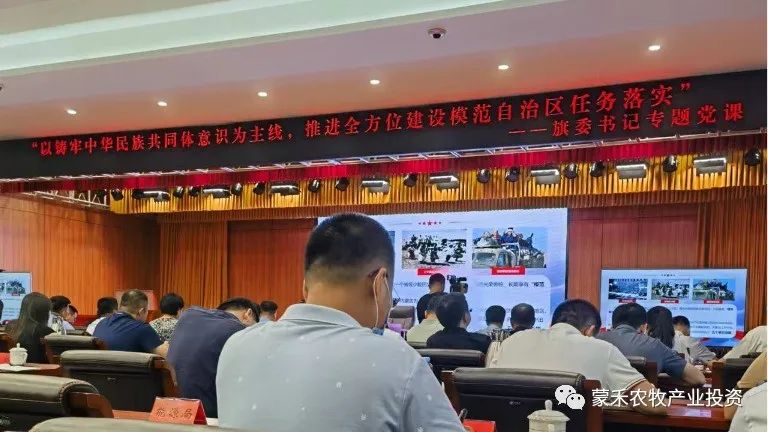 8月16日,公司全体领导班子成员参加“以铸牢中华民族共同体意识为主线,推进全方位建设模范自治区任务落实”旗委书记专题党课 。