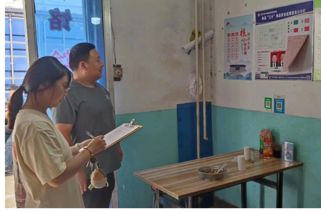 检查中,执法人员对食品安全“三小”等重点场所进行排查,严格对照食品安全“三小”行业督导检测标准,重点检查其相关证照是否齐全、从业人员是否有健康证、食品安全“三小”生产经营是否持有《营业执照》、《食品经营许可证》、《登记证》、《备案卡》、《食品生产经营日常监督检查结果记录表》、风险等级并公示上墙,是否标志出相应的风险等级、餐饮用具是否清洁消毒、 冰柜内生食与熟食、成品与半成品、肉海鲜是否分离存放、清洗过的食品是否加盖或加保鲜膜密闭遮盖、厨房垃圾是否定期清洁、后厨垃圾桶是否带盖等各项食品安全制度,提升食品安全保障能力。