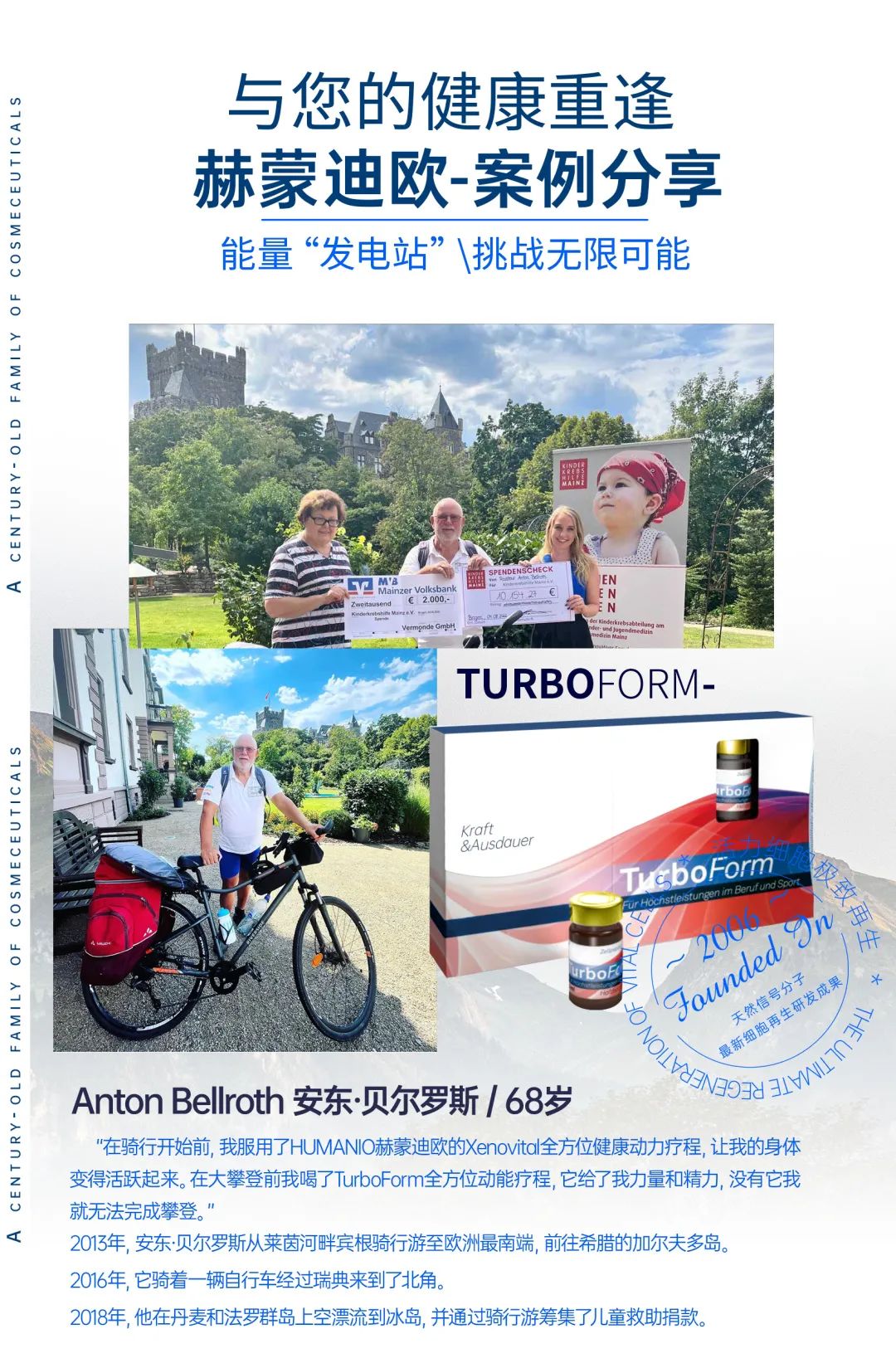 “在骑行开始前,我服用了HUMANIO赫蒙迪欧的Xenovital全方位健康动力疗程,让我的身体变得活跃起来。在大攀登前我喝了TurboForm全方位动能疗程,它给了我力量和精力,没有它我就无法完成攀登,”安东·贝尔罗斯说。