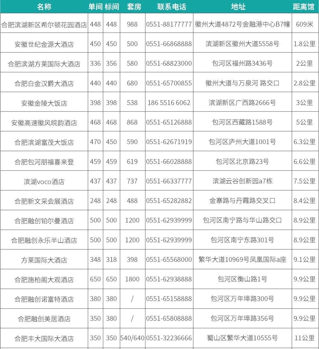 合肥高铁南站距离合肥滨湖国际会展中心约 8 公里,可乘坐地铁1号线至“滨湖会展中心站,从 B 出口出站即可到达。