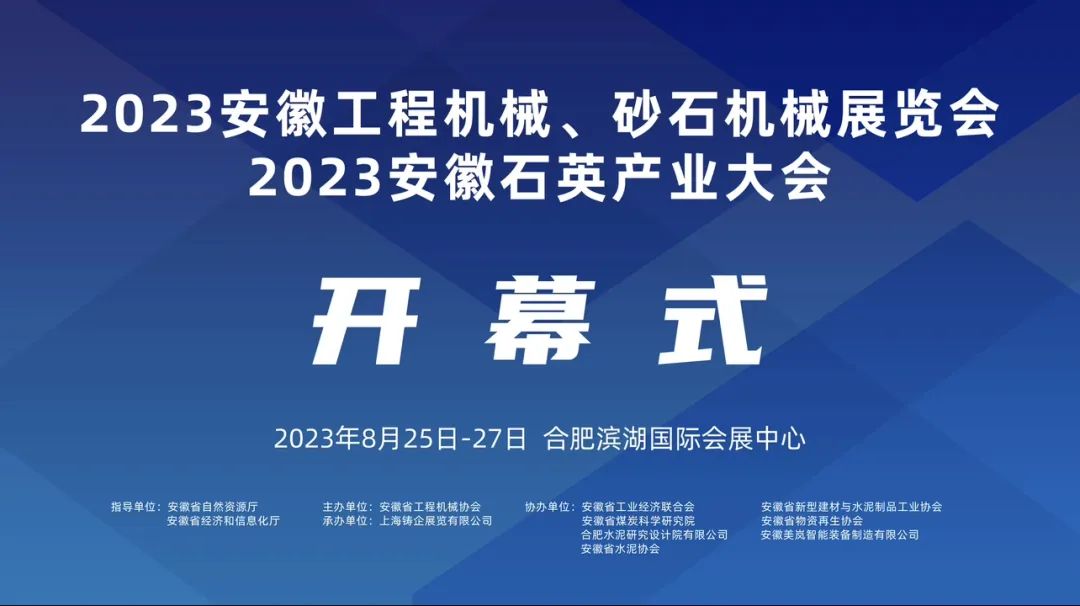 8月25日,让我们迎来了2023安徽工程机械、砂石机械展览会暨石英产业大会活动的召开,在这个丰收的季节里,我们相聚在合肥滨湖国际会展中心,共同欢聚一堂。本次展会由安徽省工程机械协会主办,安徽省工业经济联合会、安徽省煤炭科学研究院、合肥水泥研究设计院有限公司、安徽省水泥协会、安徽省物资再生协会、安徽省新型建材与水泥制品工业协会、安徽美岚智能装备制造有限公司协办,上海铸企展览有限公司承办。本次展览涵盖矿山及砂石开采、铲运、破碎、筛分、过滤、建筑固废、工程机械、采矿处理等全产业链,致力于为行业人士提供一个以品牌宣传、商贸洽谈、产品交易,技术交流为主的大型交流平台,为更多厂家和采购商提供市场前沿动向,助推优质资源精准对接,助力企业更好更快的拓展市场。