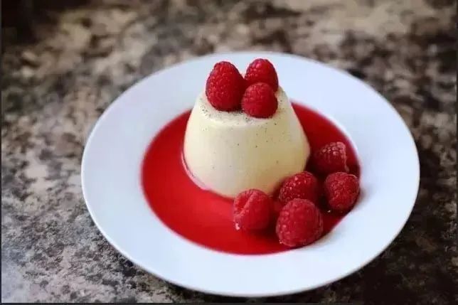 白里透红的奶冻看起来惹人喜爱,轻轻舀下一勺抿一口,让味蕾充分感受红酒奶冻的Q弹滑嫩以及树莓浆果的酸甜~