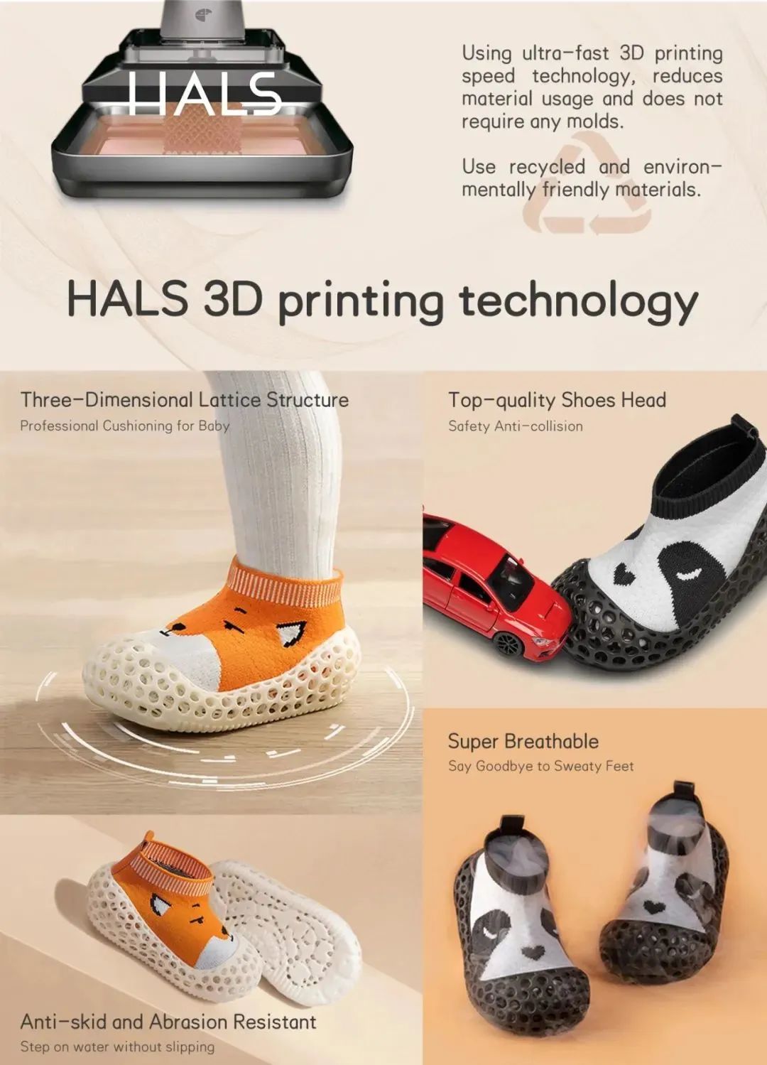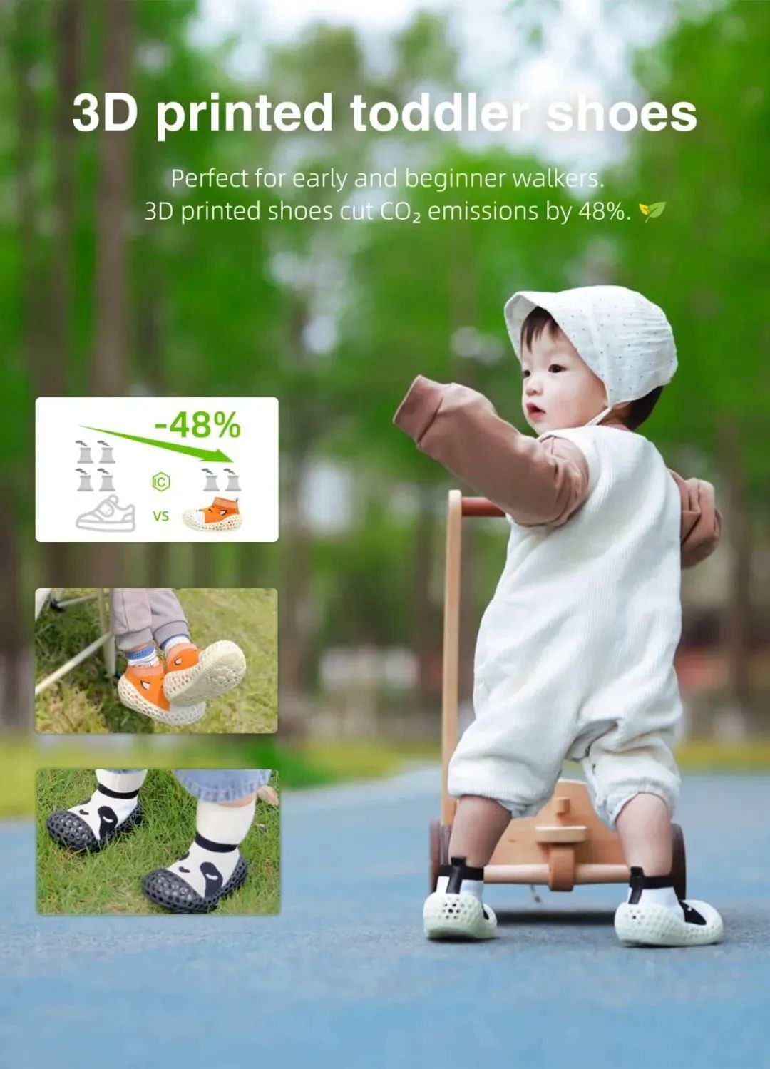 一双给幼儿探索世界的勇气,适合初学步行宝宝的鞋。鞋子采用超高速3D打印技术,具有更好的轻盈减震、舒适透气、安全防护等特点,并可回收利用。