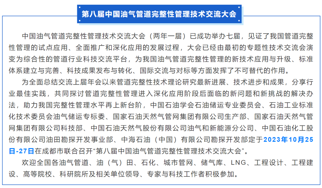 来源:中国油气管道完整性管理技术大会(微号:gh_f24d225e20c2)