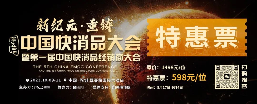 PS:2023年10月9日-11日,第五届中国快消品大会暨第一届中国快消品经销商大会将在深圳盛大举行。第一届中国快消品经销商大会将由舟谱数据联合主办。本届大会将围绕「新纪元•重铸」为主题,3天时间,1天快消行业主论坛,6场平行论坛,1天全国经销商大会,与几千名快消人一起相约深圳,探讨如何重铸企业能力,开创快消产业的新纪元!科特勒咨询集团全球合伙人、大中华及新加坡CEO 曹虎