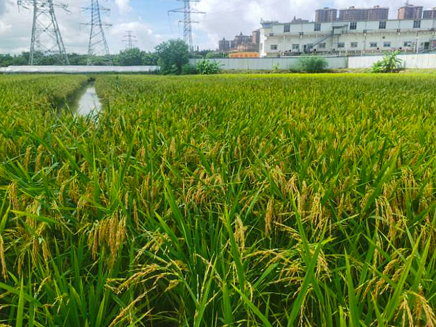 随后,调研团队一行前往该公司的幸福农法产业示范园实地参观。孙保兴董事长介绍,公司于今年1月接手产业示范园,其占地面积250多亩,拟实施种养循环、品种协同、错峰轮作,以及通过土壤修复、转能供肥、增强作物抗逆性等具体举措,打造“幸福农法”技术体系6.0产业示范园,为全国各地“幸福农法”建设主体提供学习样板。该基地已于今年上半年按照“幸福农法”种植管理了150亩五香丝苗米水稻,在今年整个珠三角早稻病害特别严重的背景下,获得了亩产1350斤(湿谷)夏收成绩;同时引来成群的白鹭、野生蜜蜂、蜻蜓和燕子,生态景观再现。