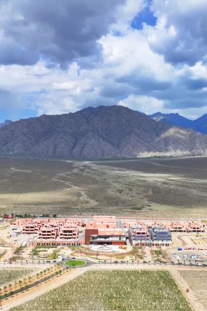 创意学院的“贺兰巨石”设计灵感,呼应贺兰山脉的宏观环境形态与尺度,在自然地脉与酒庄肌理的层面确立其标志性。它引入同济大学艺术与传媒学院、上海音乐学院等高校资源,作为其校外基地使用,日常亦可作为小镇内部培训基地。