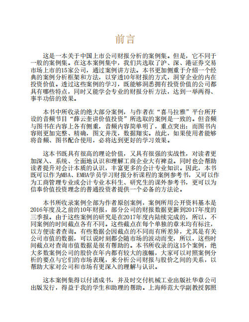 本书从超过3000家A股上市公司中精选15家热门、争议大、媒体关注度高的公司,这些公司既可以给投资者带来数十倍收益,也可能是高危雷区。作者通过独创的穿透式财报分析法分析了这些公司连续10年的财务数据,帮助你了解他们的商业模式、管理效率、财务稳健度和业绩真相。你将习得一套识别企业的方法,做出科学的决策,投资未来,而不是赌未来。
