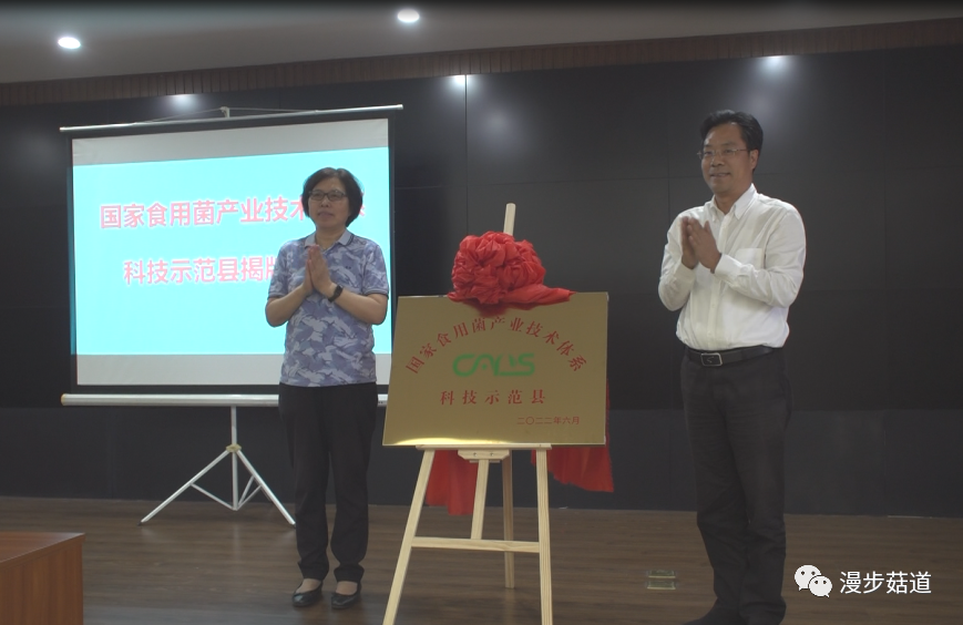 在召开的研讨会上,谭琦、王占祥为“国家食用菌产业技术体系科技示范县”揭牌,张劲松、王占祥为“上海市农业科学院食用菌研究所《设施制棒生态出菇》示范基地”揭牌。臧红建介绍了阜平县食用菌产业发展情况,李明介绍了河北省食用菌产业发展现状和阜平县食用菌产业在河北省食用菌产业发展中的定位。