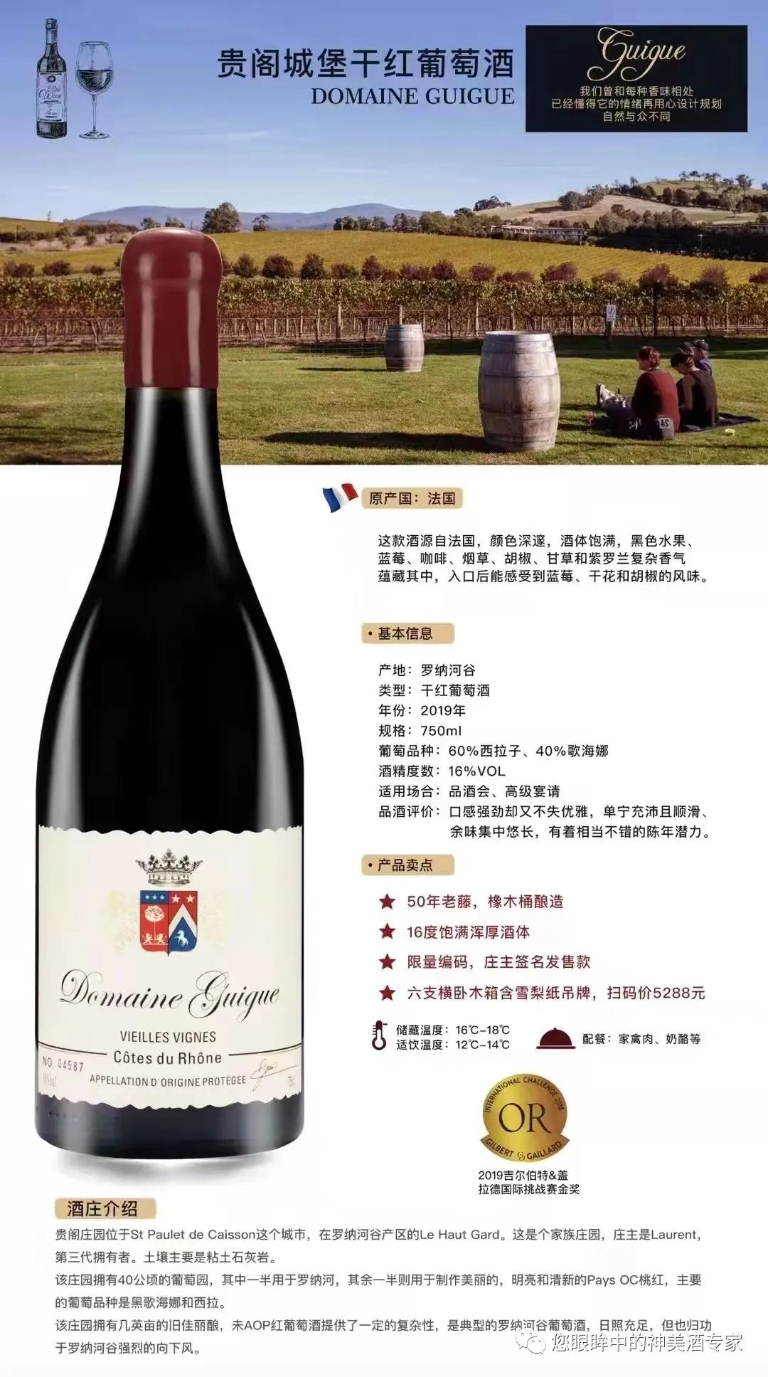 产品级别:50年老藤,12个月橡木桶 60%西拉+40%歌海娜